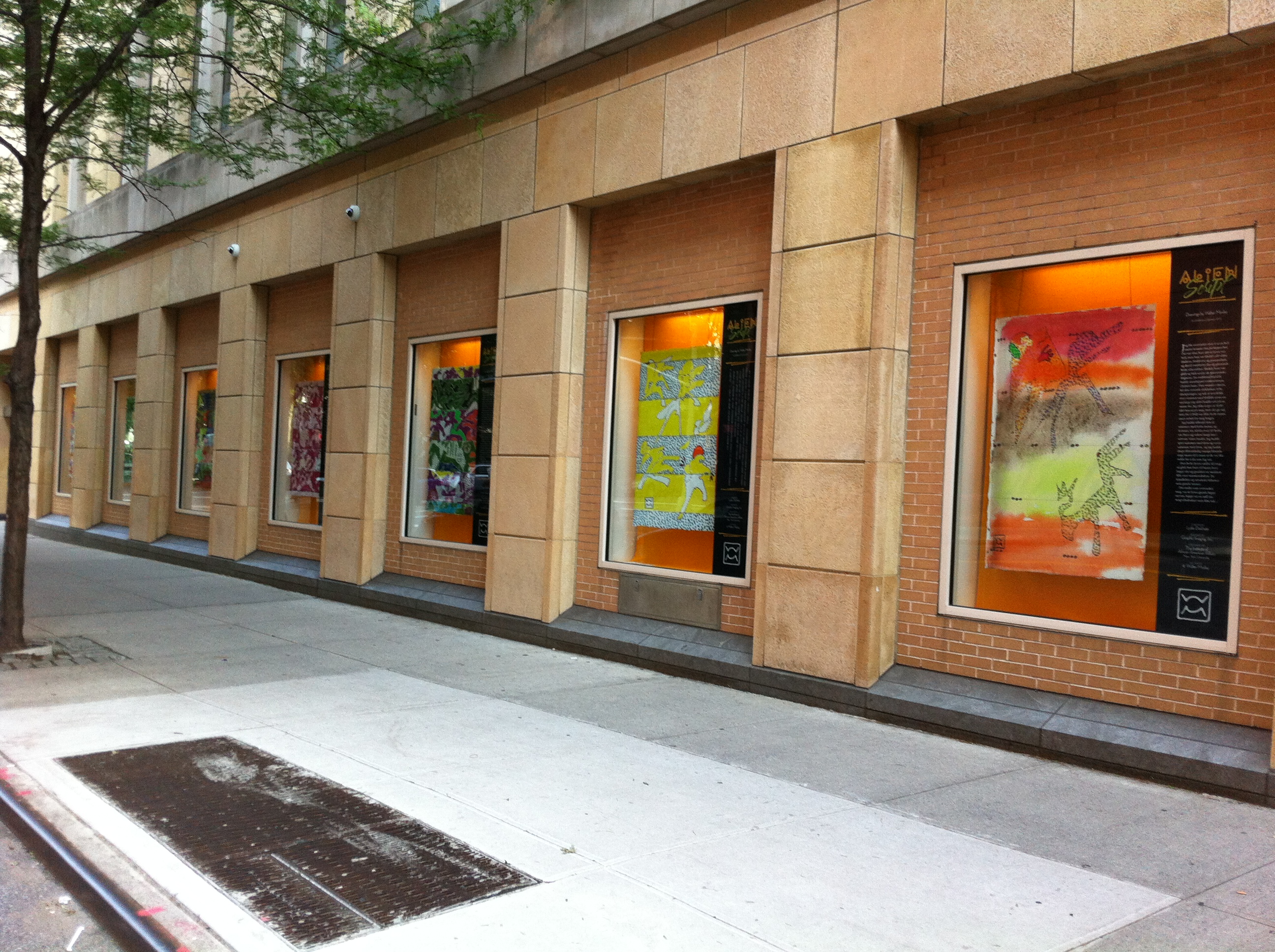 An outdoor series of 18 large-scale drawings from Walter Mosley’s sketchbooks displayed at the NYU/Kimmel Center Windows Gallery at LaGuardia Place and West 3rd Street, New York City.